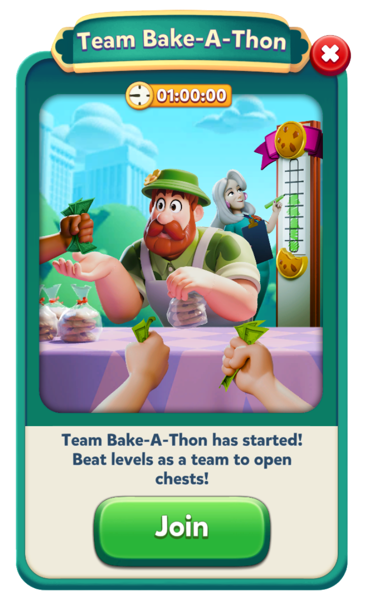 Team Bake-a-thon 🍪😋 is a limited-time Team event where players work together as a team to collect tokens by conquering levels and claiming rewards. Rewards are based on the total number of tokens collected by ALL TEAM members. Each Team member claims their reward individually, and all members receive the same rewards.