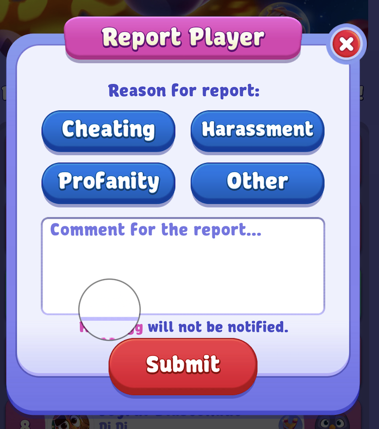 Our utmost priority is to ensure a secure and enjoyable experience for every player in our game. If you encounter any questionable or inappropriate behavior from another player, please don't hesitate to inform us immediately! Your feedback is crucial in maintaining a safe and fun game environment.