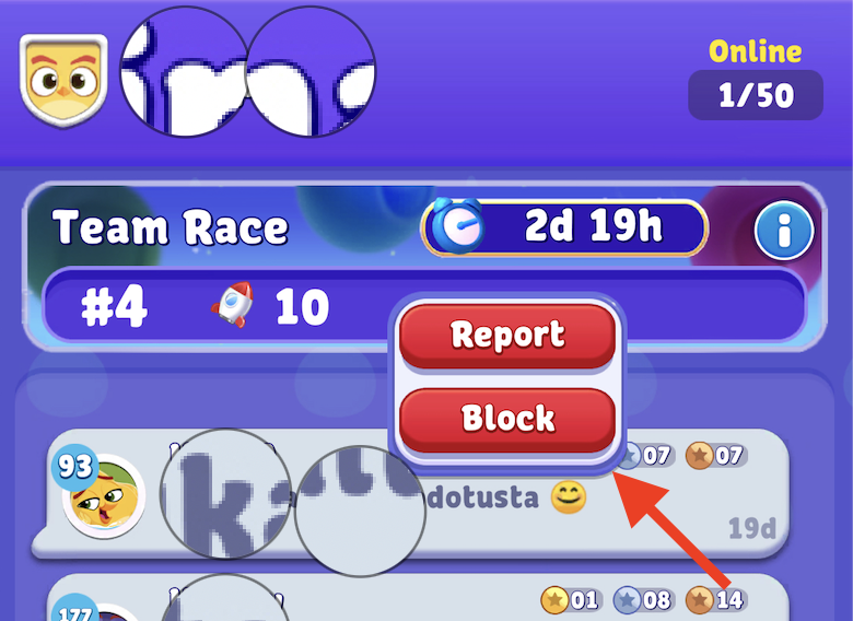 If you are in a team, you can block someone so you do not see their messages in the team chat. To do this, tap on the specific player's profile in the team chat or my team tab. Then, a pop-up will appear with a "Block" button. Tap the "Block" button to block the player and ensure you no longer see their messages.